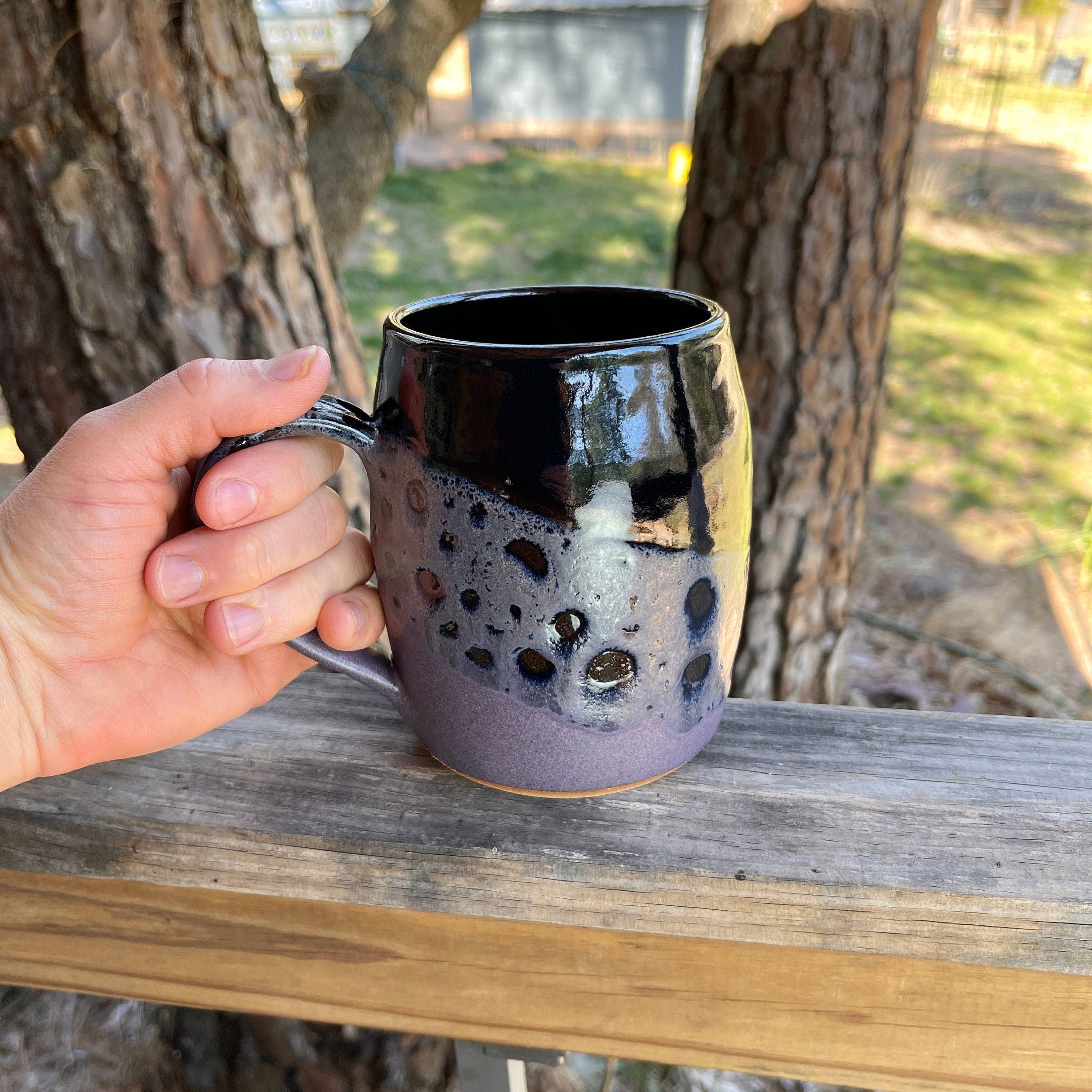 22 24oz Barrel Mug In Midnight Glaze Wheel Thrown Pottery Etsy